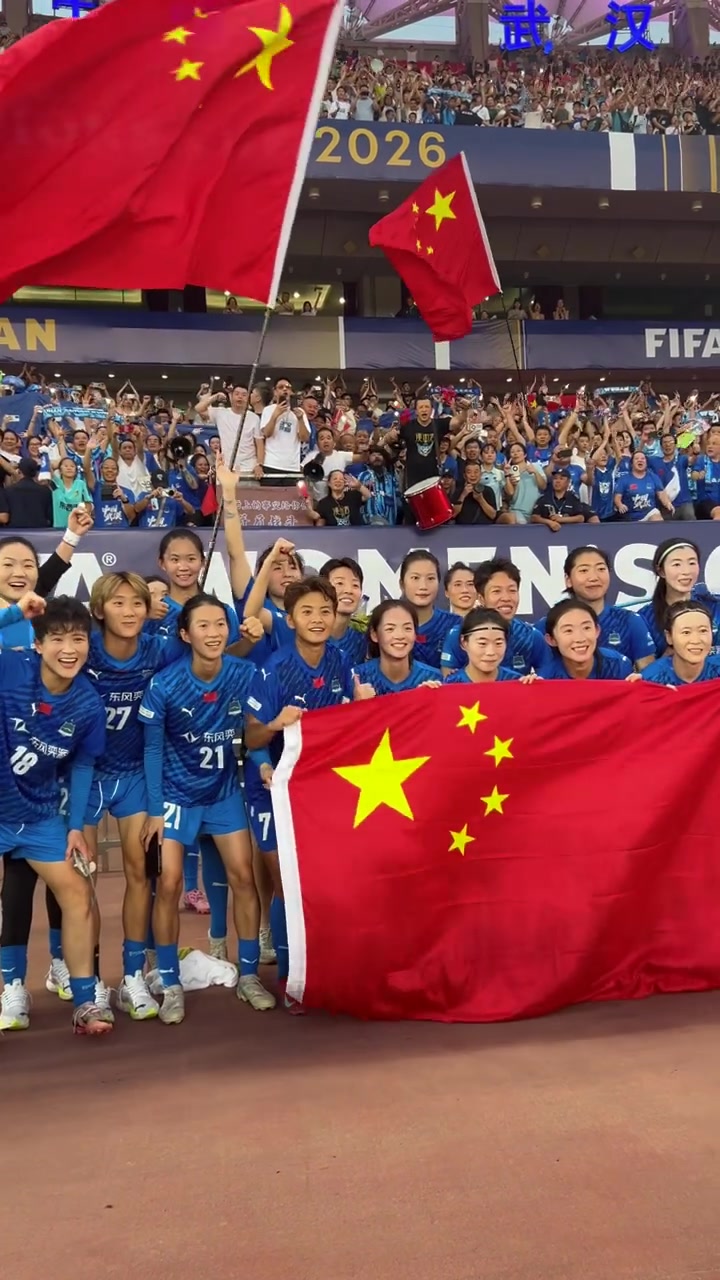 中国自满!武汉车谷江大女足赛后展示国旗拍摄大合照