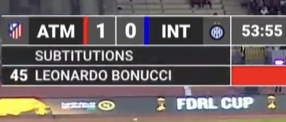 在比赛进行到第53分钟的期间,国米用小将卡兹马斯基替换下小将莱昂纳多-博沃,但赛事转播方却指示国米用埃里克森换下了博努奇。