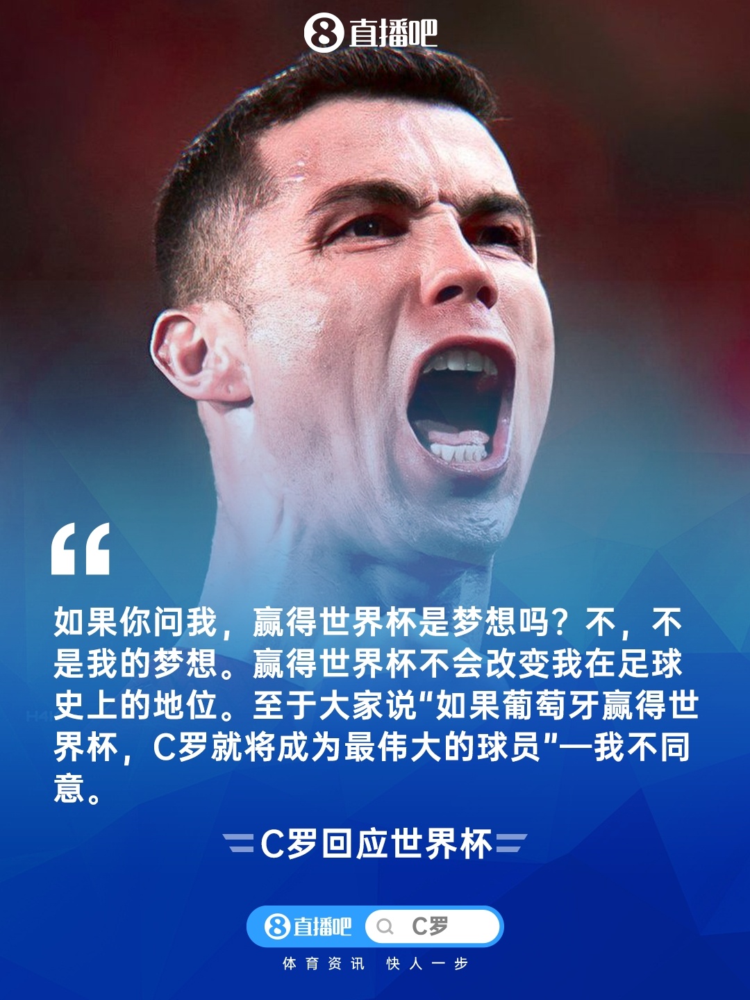 C罗:不,我没念念这个,我我方皆被我方的谜底吓了一跳。若是你问我,赢得天下杯是梦念念吗?不,不是梦念念。