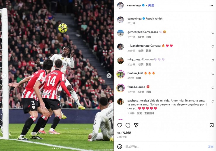 问题不大?进球后伤退,卡马文加社媒晒同姆巴佩搞怪庆祝