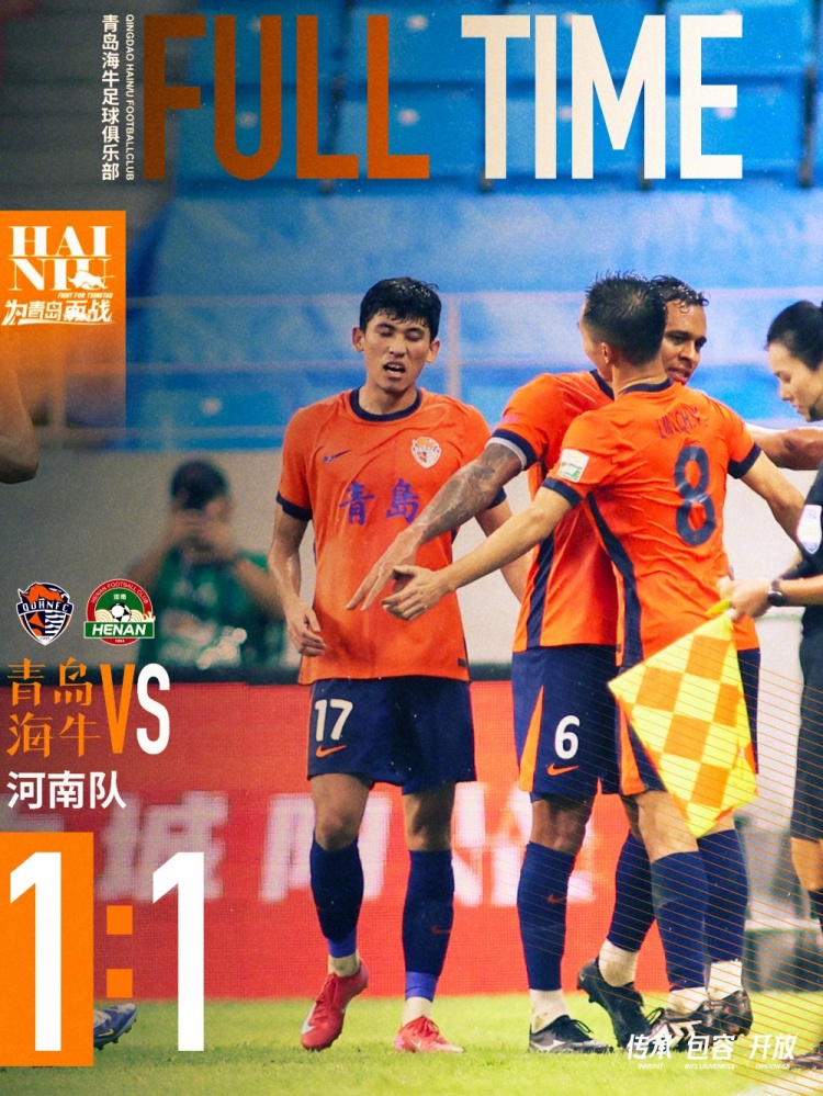 全场比赛扬弃,青岛海牛1-1战平河南队,林创益为球队打入一球。