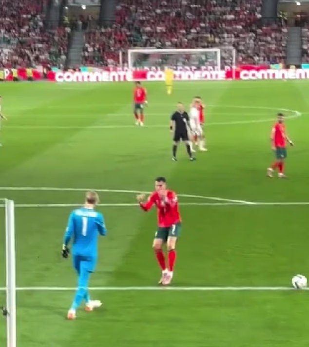 视频中不错看出,C罗似乎不悦凯莱赫拖延工夫的作念法,他主动将球摆好,并朝着凯莱赫饱读掌呼喊线路他加速节拍。凯莱赫则是朝C罗竖了个大拇指,然后不紧不慢地重新摆球,C罗随后摊手朝裁判发泄不悦。