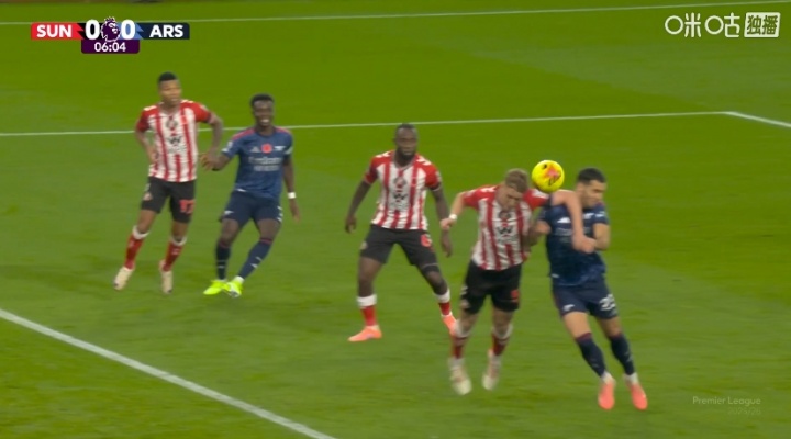 11月09日讯 英超第11轮桑德兰vs阿森纳第7分钟,阿森纳遑急,梅里诺禁区内争顶时头部遭到巴拉德肘击,随后他厄运倒地。裁判并未判罚此球犯规。随后梅里诺在汲取队医的诊治后回到比赛。