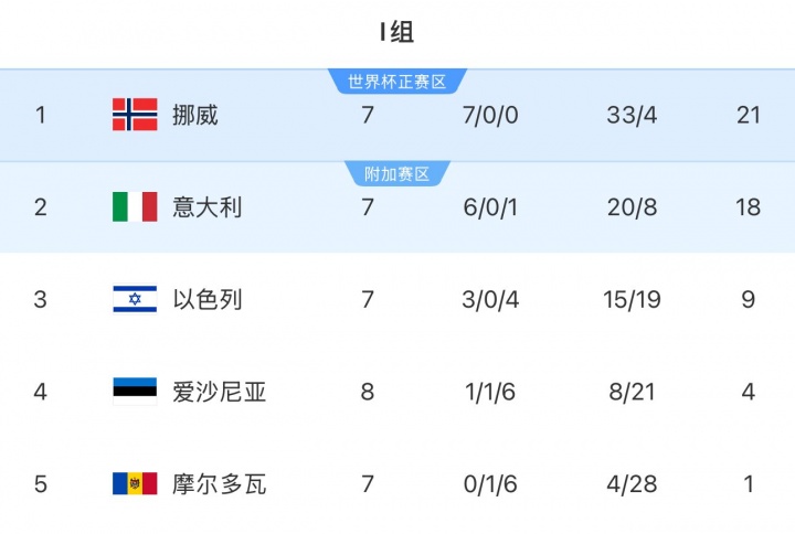 在本届天下杯预选赛中,6月0-3负于挪威基本锁定了小组第二的气运。尽管意大利尔后全胜,但由于挪威累积了18球的重大的净胜球上风,意大利在终末一轮即便打败挪威也确切不能能反超,他们需要9球大捷。