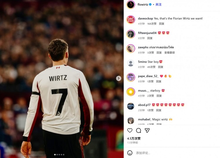 利物浦球迷也纷繁在褒贬区荧惑:“这是咱们思要看到的维尔茨”、“明星小子”、“魅力维尔茨”…