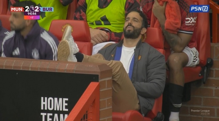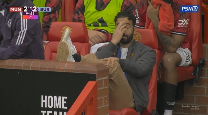 生无可恋!B费罚点前阿莫林翘起双腿仰面望天,照旧不敢看了