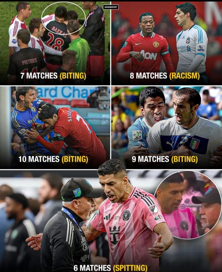 苏亚雷斯生计中有过不少争议事件,他此前3次因咬东说念主、1次种族脑怒被禁赛。
