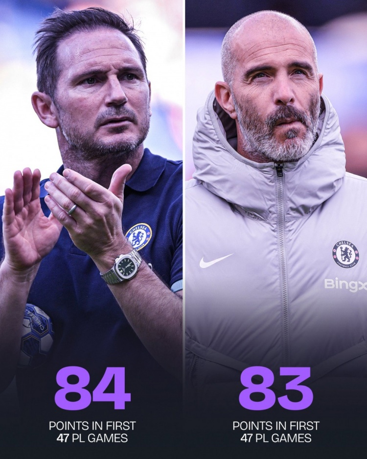 而数据统计露出,马雷斯卡握教切尔西的前47场英超仅赢得83分,以致还不如兰帕德同时的收货(84分)。