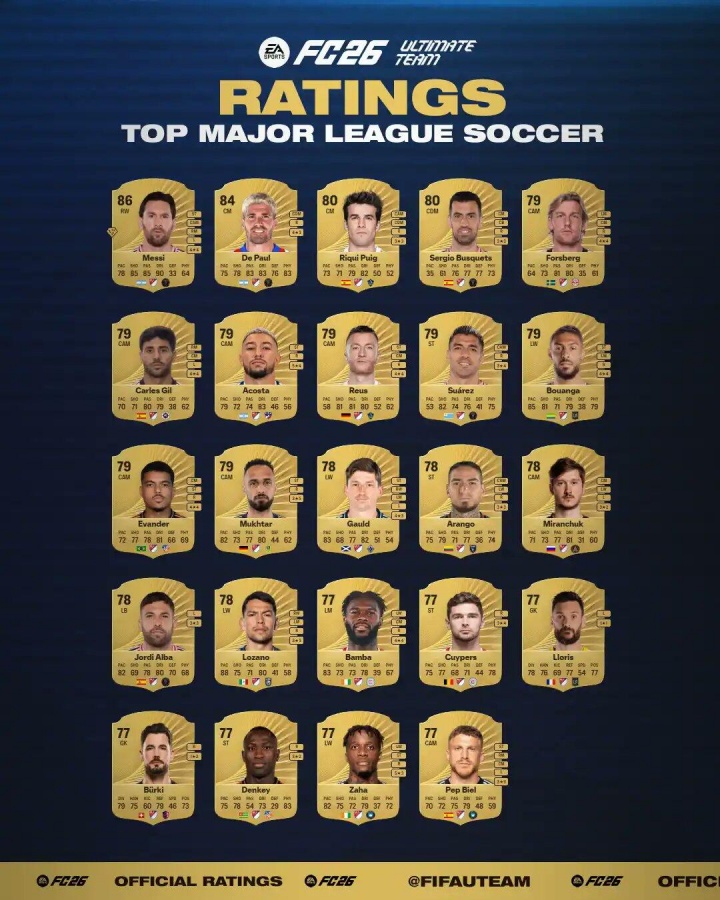 09月03日讯 FC26官方公布好意思职联球员才能值排名,梅西以86的才能值位居第1!德保罗84排第2。